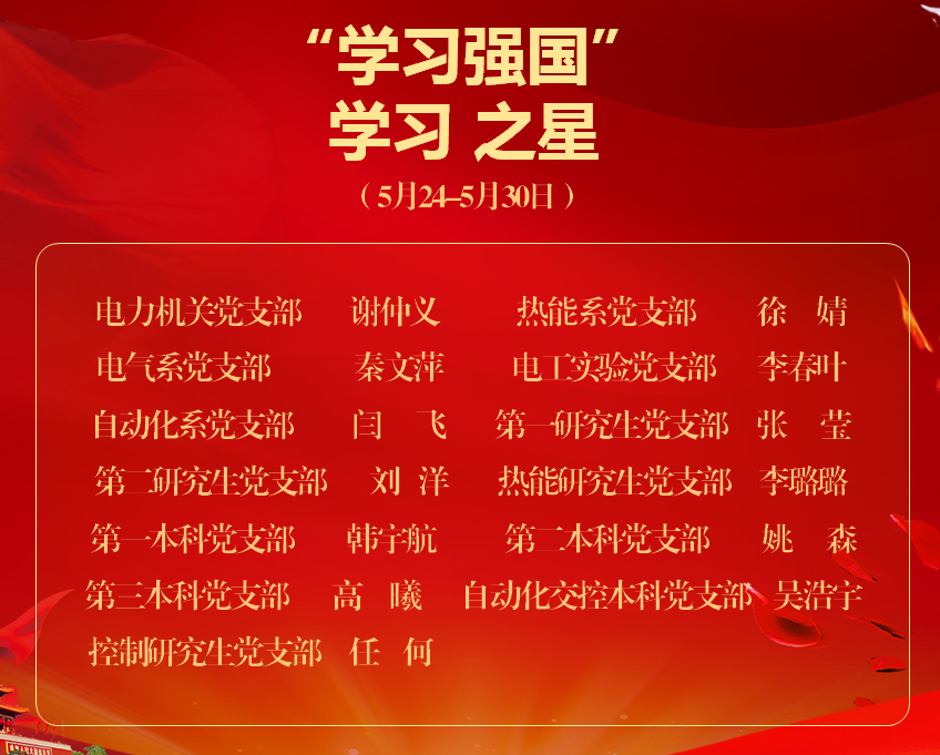 电力学院《学习强国》学习之星(2021年5月24日-5月30日)