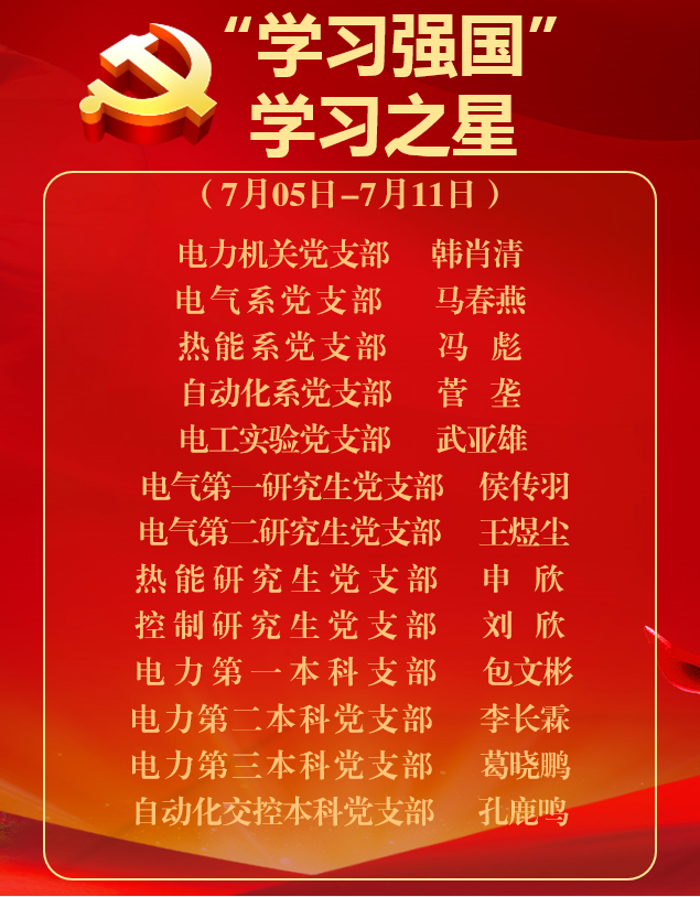 电力学院《学习强国》学习之星(2021年7月5日-7月11日)