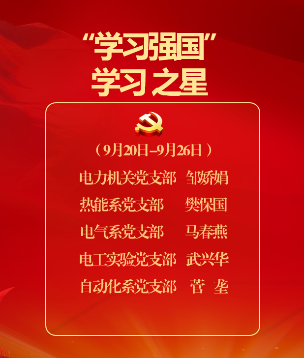 电力学院《学习强国》学习之星(2021年9月20日-9月26日)