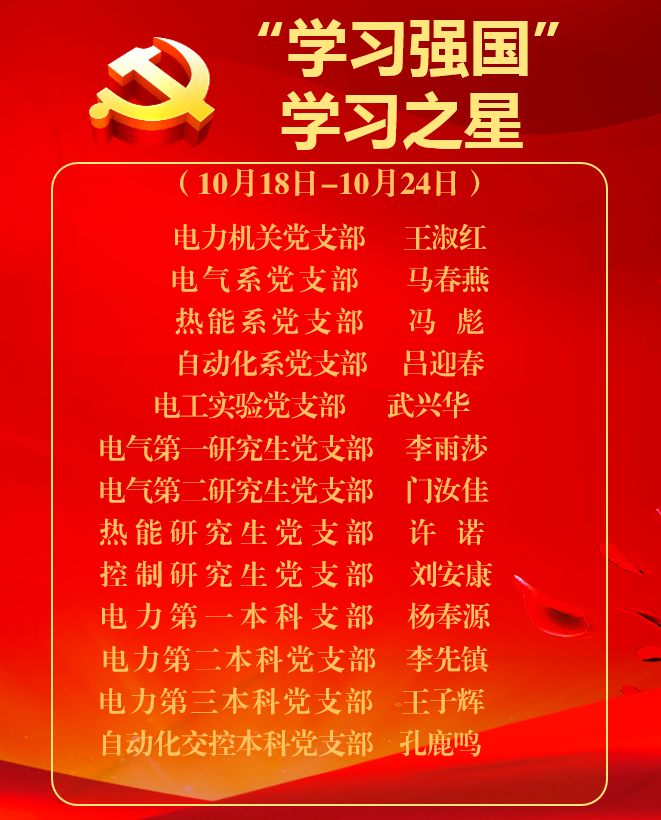 电力学院《学习强国》学习之星(2021年10月18日-10月24日)