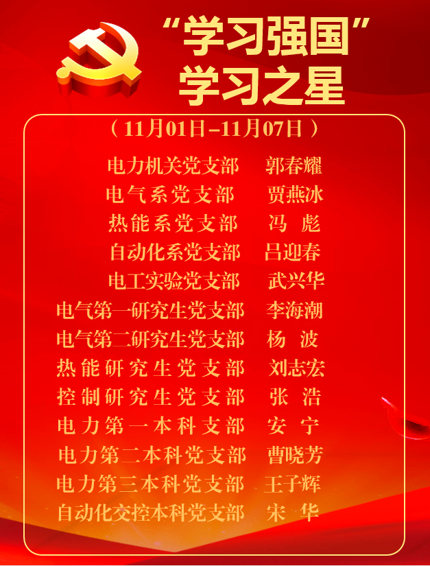 电力学院《学习强国》学习之星(2021年11月1日-11月7日)
