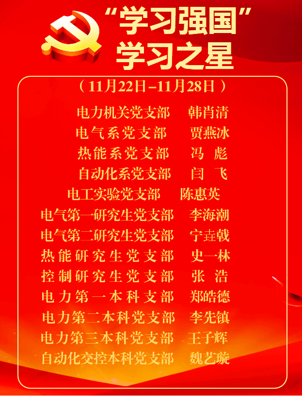 电力学院《学习强国》学习之星(2021年11月22日-11月28日)