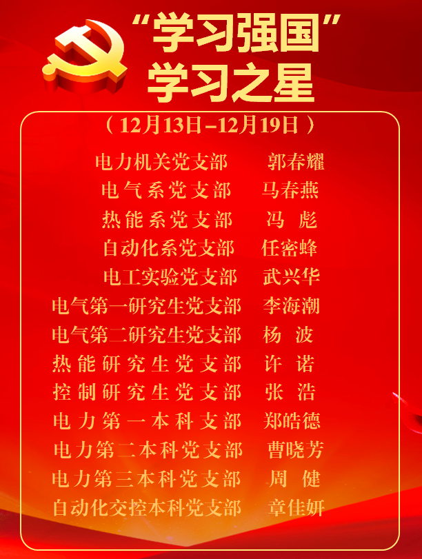 电力学院《学习强国》学习之星(2021年12月13日-12月19日)