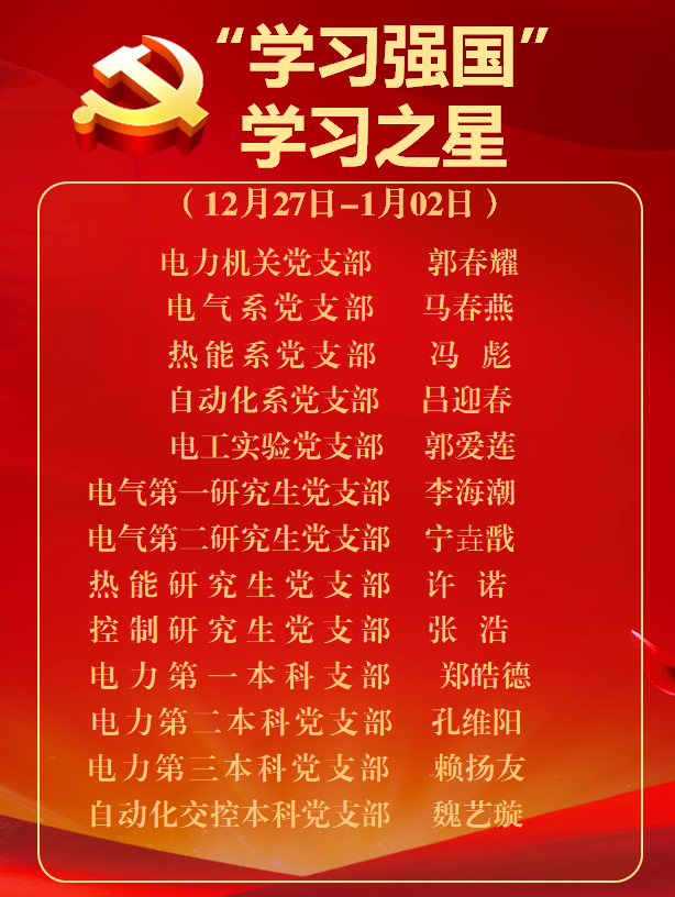 电力学院《学习强国》学习之星(2021年12月27日-2022年1月2日)
