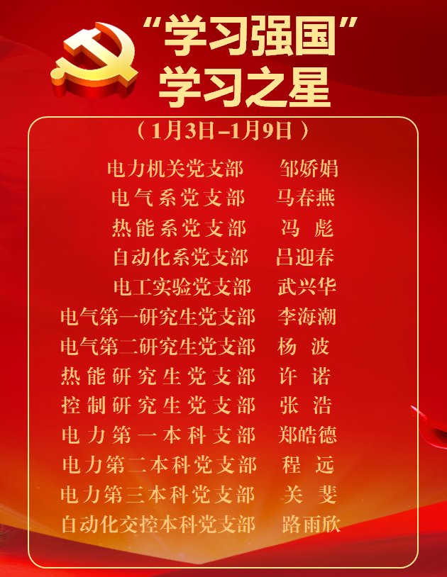 电力学院《学习强国》学习之星(2022年1月3日-1月9日)