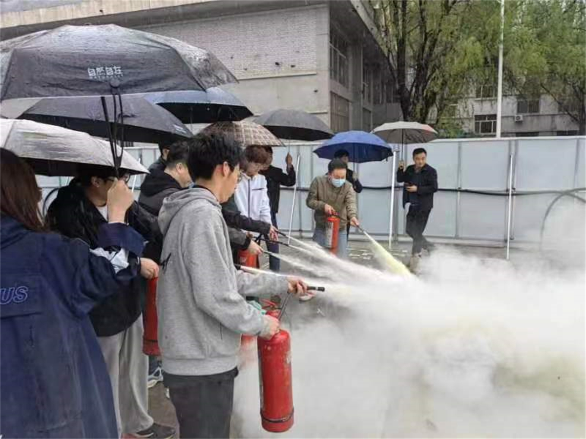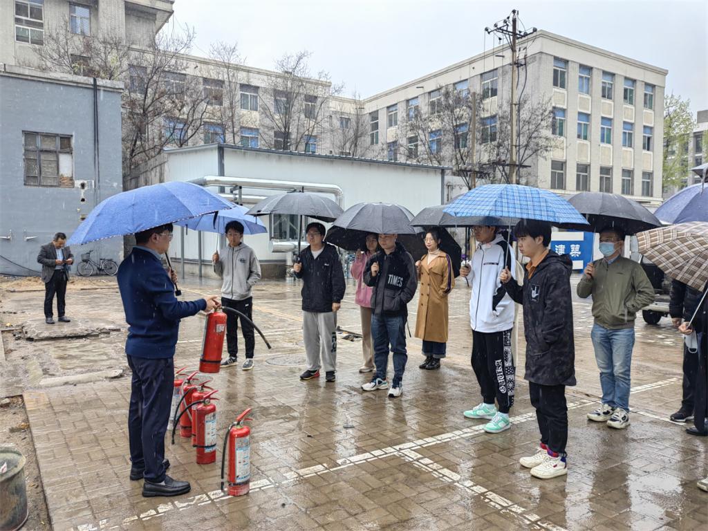 讲座结束后,学院各实验室教师、学生代表在保卫处消防科专业人员的指导下学习了灭火器和楼内消防设备的使用方法,现场进行了灭火演练。