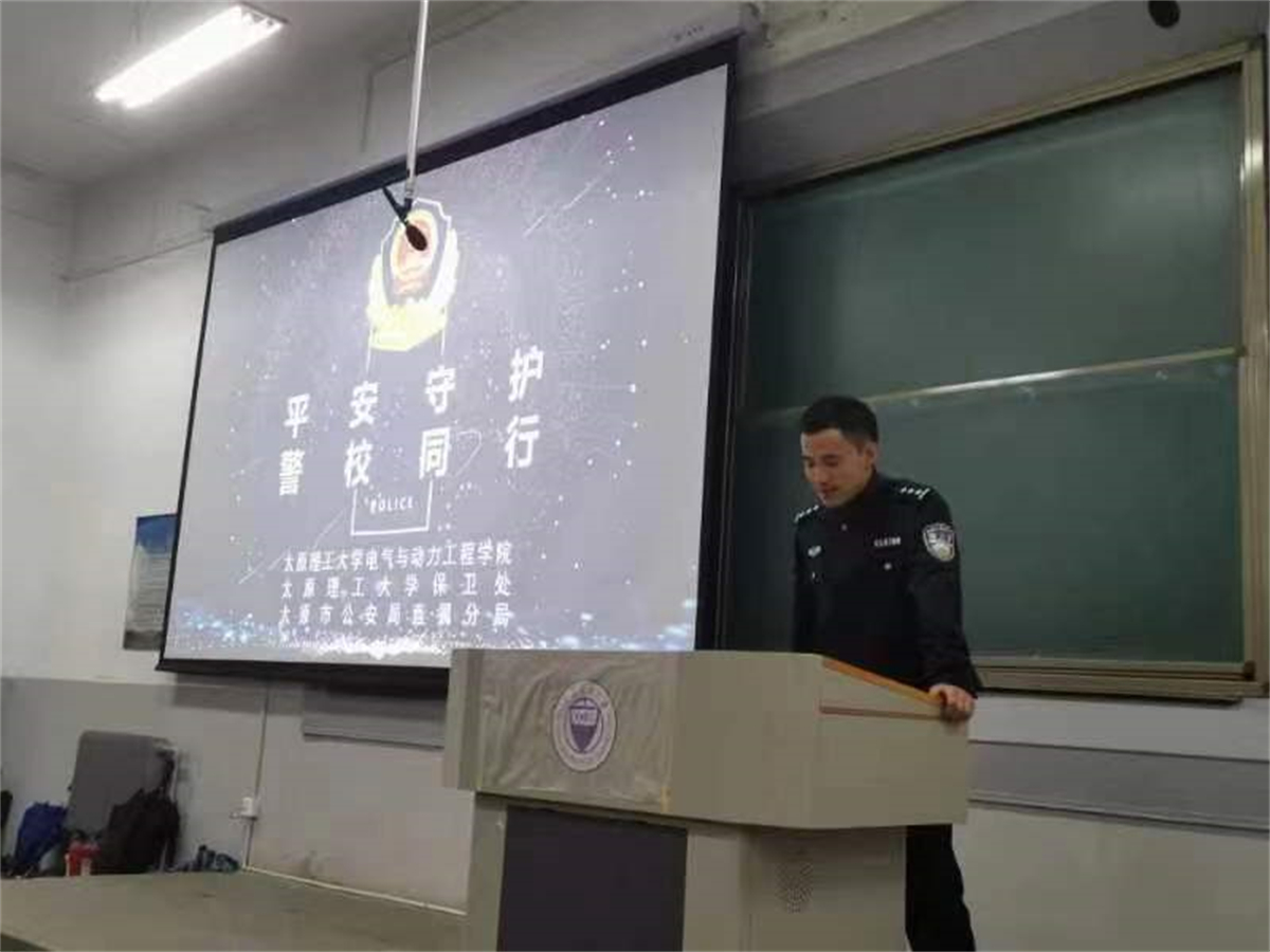 王安瑞警官以亲身办案案件为切入点,从治安形势,防范诈骗,防范盗窃,防校园贷,远离传销,打架成本,维护稳定六个方面深度剖析了常见的犯罪手法、后果及危害。同时希望同学们增强防范电信诈骗的意识,提高辨识能力;理性解决冲突,智慧化解矛盾,减少和防范打架斗殴事件的发生;增强网络安全意识,端正网络行为,共同营造和维护校园安定和谐的良好氛围。